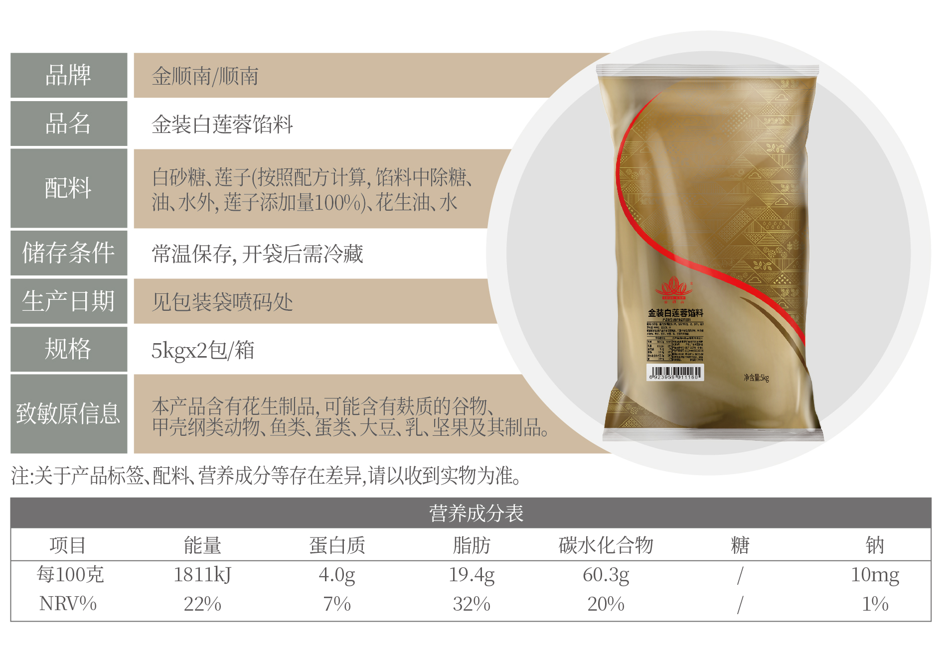金装白莲蓉馅料