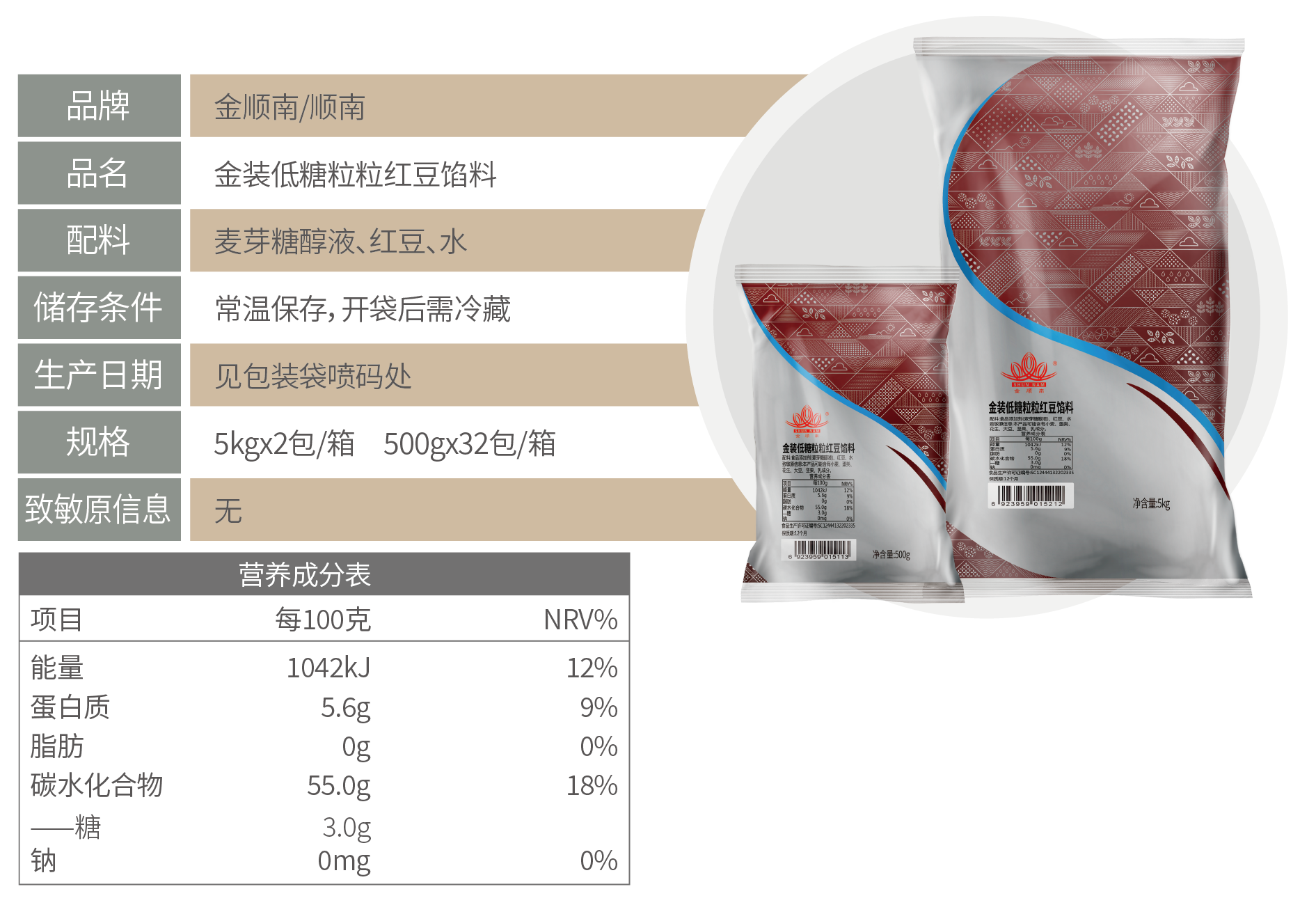 金装低糖粒粒红豆馅料